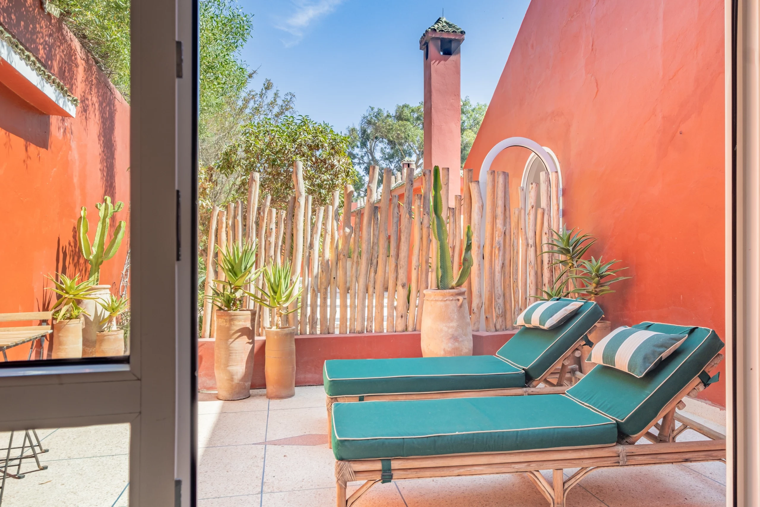 Particularly quiet, the Cactus room and its private terrace open onto the cacti garden which is in the back of the villa and reserved for our guests. The same cacti can be found inside the suite as well in their natural state or handcrafted.