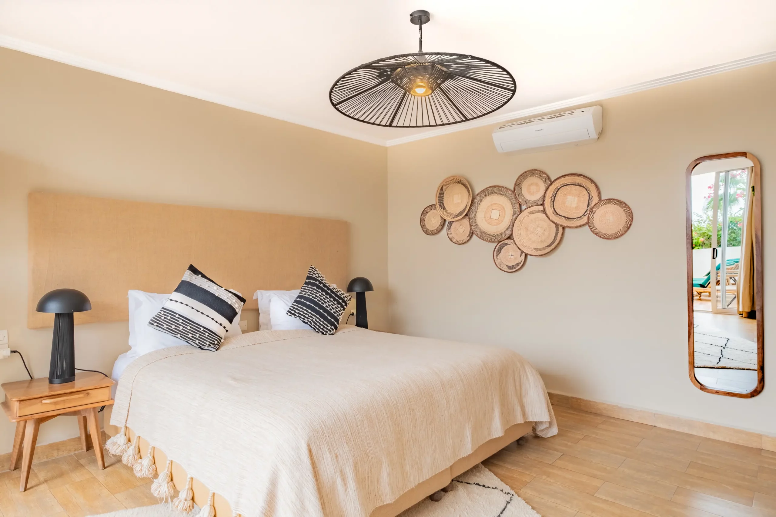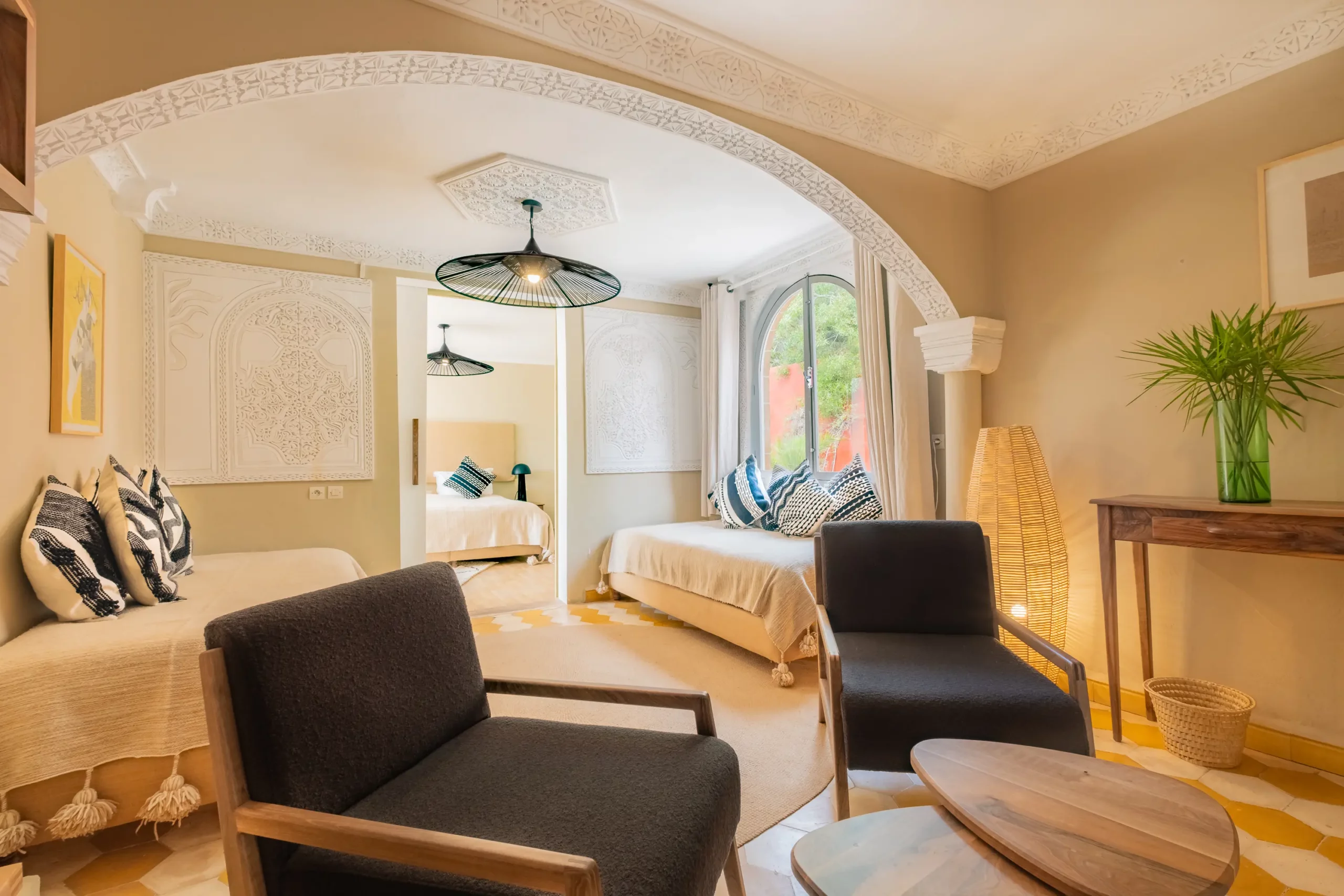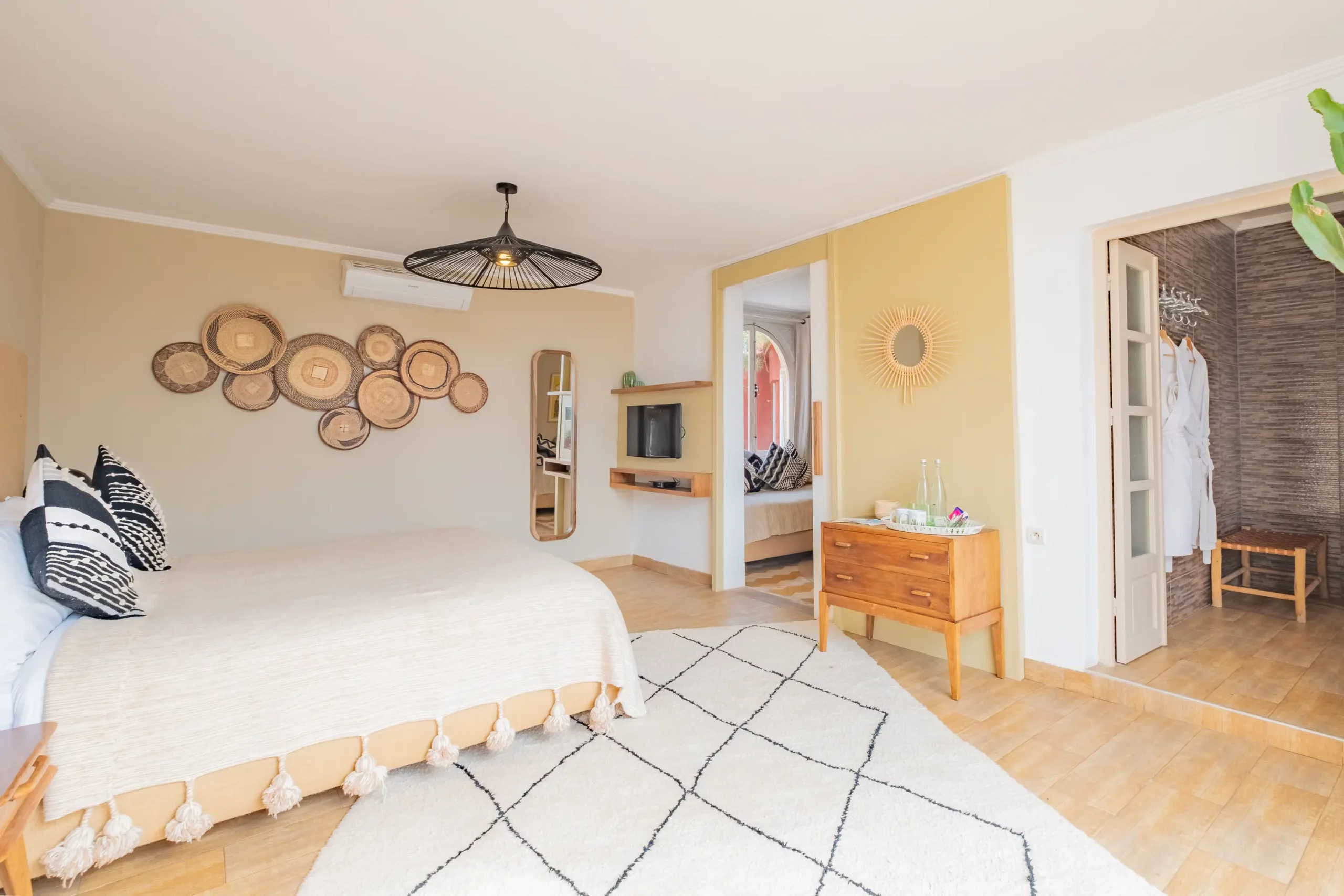 Situated on the first floor of the main building, the suite Créole is particularly luminous with its large bay window opening onto a private terrace. Composed of a spacious bedroom and a lounge area with a fireplace which can be transformed into a kids’ room, it is ideal for a couple or a family of 3 or 4 looking for rest and privacy.